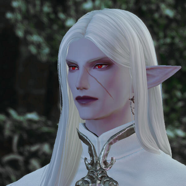 A man of lithe build and pale lilac complexion glides across a gilded ballroom with such ease as to give the illusion of floating. He carries an effortless air of noble decadence, both desired and reviled by the guests present. Sylvain Boudreaux carries the title of Lord not from pedigree, but from his inheritance and oversight of the Disdier Demesne, an eclectic mercantile district erected on grounds once owned by a late lord of the same name. An occult antiquarian and once-dollmaker, Sylvain operates a storefront within this district as the proprietor of Ishgardβs finest collection of rare artifacts. The highest echelons of society frequent this shop not for curiosities, mind you, but for private dealings with the Lord Boudreaux himselfβknown in hushed tones as a granter of even the most diabolical wishes. Should desperation lead you past the raspy hisses of his companion vultures to the red, rose-laden parlor within this cluttered shop of curiosities, be on your guard, as his clients always receive exactly what they ask for.