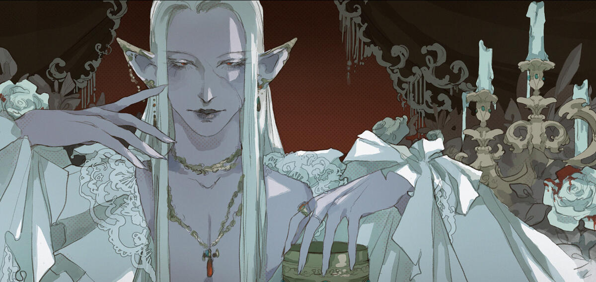 A far cry from the decadent charm Sylvain is now known for, he was born an Elezen of no renown far beneath Ishgardβs resplendent spires, during an age when the wartorn city-state was yet young. His talents for repairing delicate mechanisms, dollmaking, and song went unsung in such times, and for all the love he could offer, he could not sustain his young wife and daughter. Desperation to provide for his family resulted in tragedy as he fell victim to the machinations of a voidsent noble in his naiveteβyet fate would deny Sylvain a true death alongside his beloved. A ritual mimicking sorcerous rites of eld trapped Sylvain's consciousness in the same body as his Lord, melting their shared consciousness into a new entity altogether. Inheriting his Lord's estates in both Ishgard and the Void, Sylvain now effortlessly preys on the idle whims of Ishgardian nobility to suit his vampiric needs. Even so, he does not forego mutually beneficial deals with allies as well as enemies, and befriends a bastard son of the heretical House Drauvaix in the Sixth Astral Era. This alliance would later result in two orphaned wards coming into his protectionβone of which would one day become the Warrior of Light.